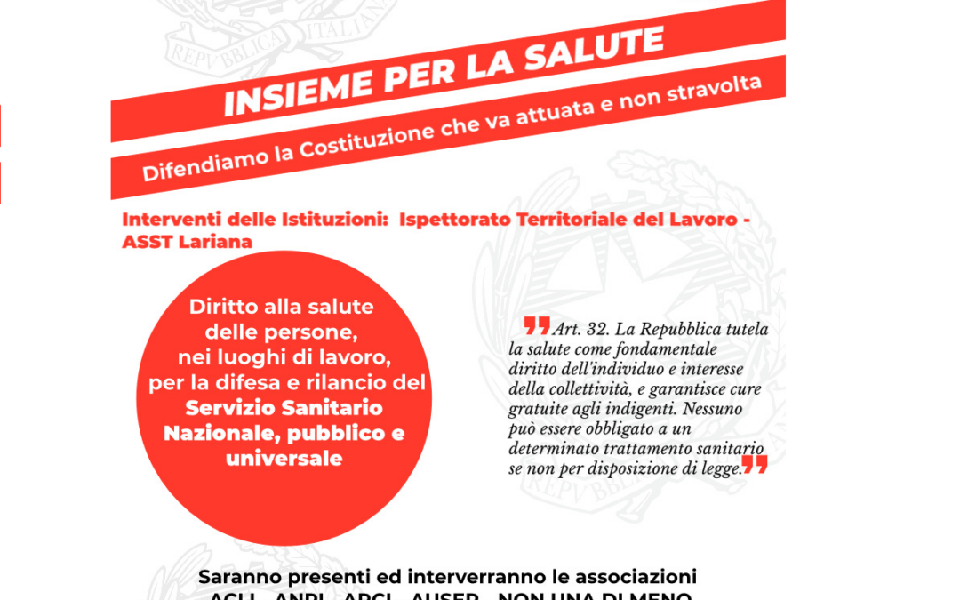 mercoledì 14 giugno alle 17,00 saremo in piazza Martinelli a Como a discutere del diritto alla salute delle persone nei luoghi di lavoro, per la difesa e il rilancio del Servizio Sanitario Nazionale, pubblico e universale.